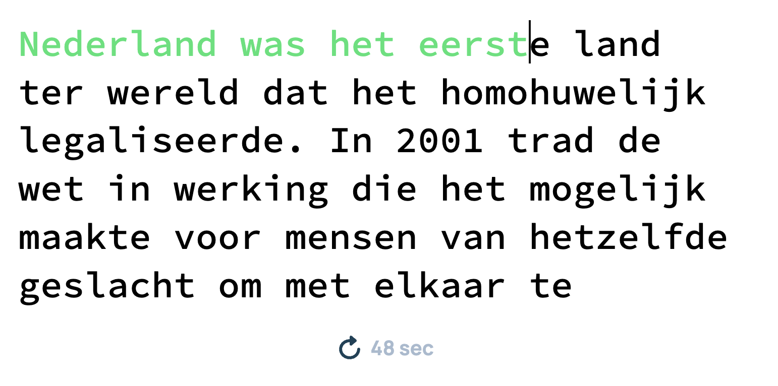 De cursor moet knipperen voor het teken dat je gaat invoeren. De getypte woorden in de test moeten groen worden. Als je de cursor niet kunt zien, klik dan op de testtekst.