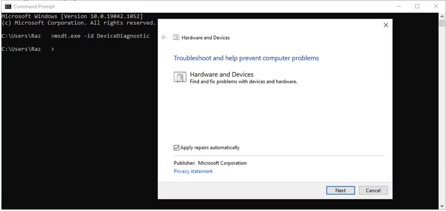 В более старых версиях Windows можно получить доступ к устранению неполадок аппаратного обеспечения и устройств через панель управления. Теперь нужно воспользоваться командной строкой. Вот как: