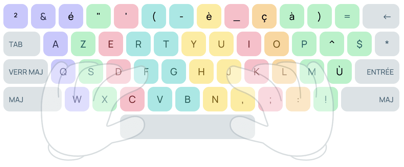 3. Utilisez les doigts appropriés pour chaque touche, comme l'indique notre schéma de couleurs.